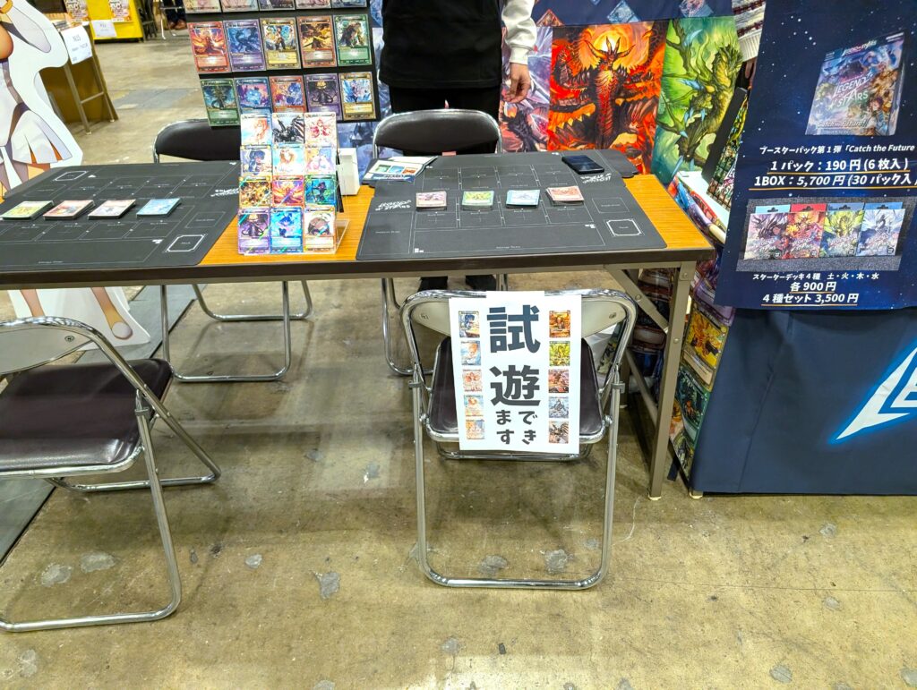 今回も2025春同様、試遊スペース2卓と販売スペースを確保した中規模設営を行いました。
