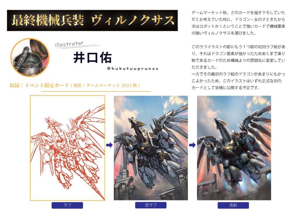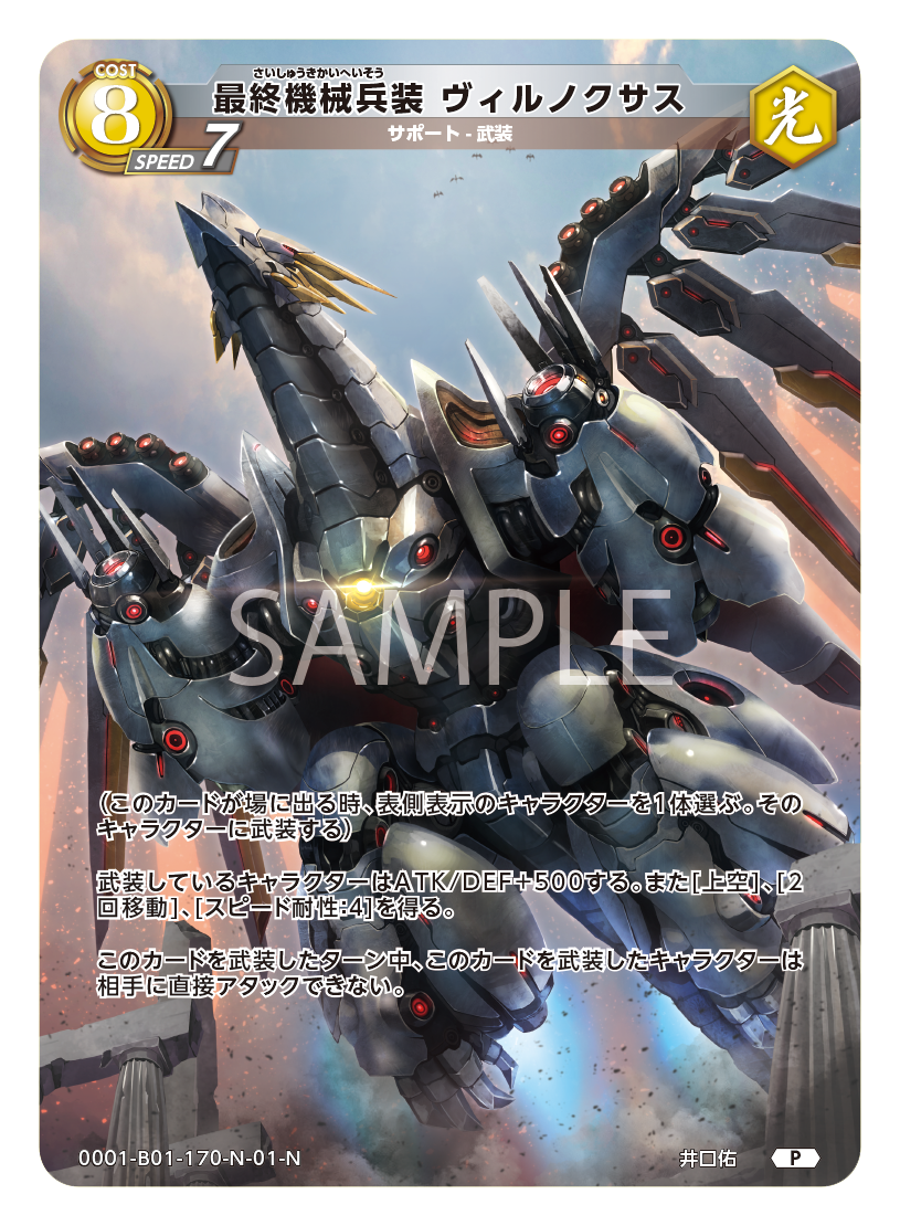 最終機械兵装 ヴィルノクサス さいしゅうきかいへいそう ヴィルノクサス 種別:サポート サブ種別:武装 コスト:8 属性:光 スピード:7 レアリティ:P (このカードが場…