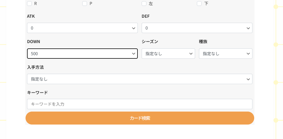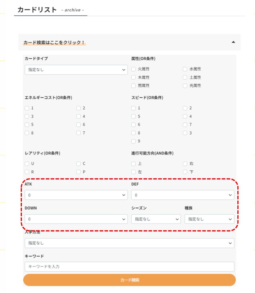 キャラクターのステータスATK/DEF/DOWNの値で検索することができるようになりました。