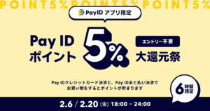 「Pay ID ポイント」5%還元(上限:1決済あたり30,000ポイント)